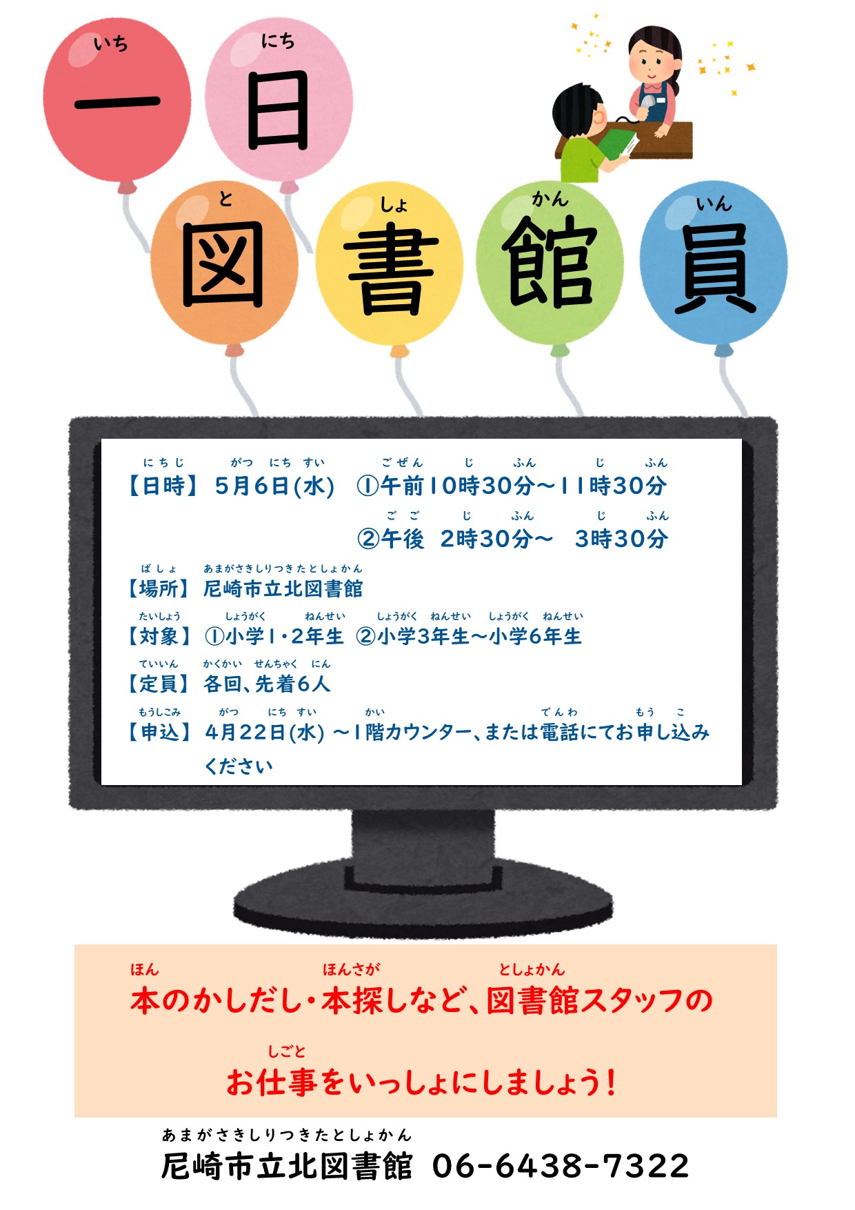 本のかしだしや本探しなど図書館スタッフのお仕事体験ができるイベントです。